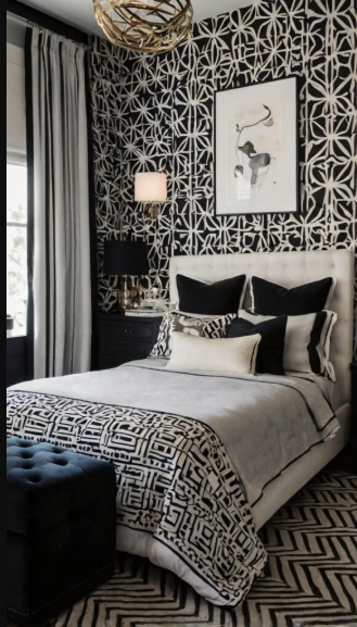 Incorporate geometric-patterned wallpaper, rugs, or bedding to give your bedroom a chic, modern edge. Black and white geometric designs instantly create a bold, contemporary feel—choose oversized patterns for a dramatic statement or subtle prints for a more understated look.
