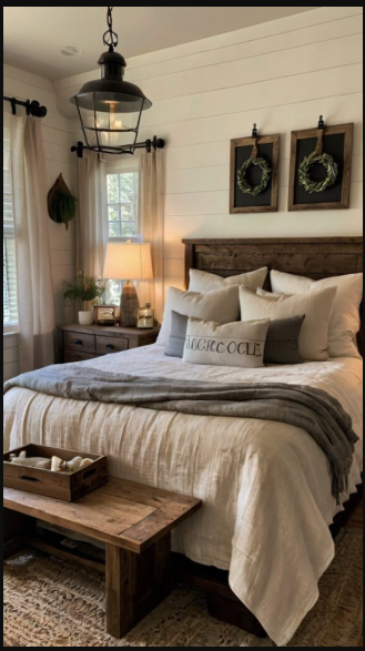 Incorporate rustic farmhouse charm into your black-and-white bedroom with wooden beams, shiplap walls, and cozy textiles. Opt for distressed white furniture, vintage-inspired décor, and black iron light fixtures to create a warm, inviting atmosphere. Add a checkered or plaid pattern to further enhance the farmhouse aesthetic.