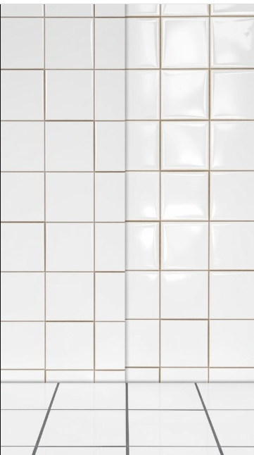 When planning a bathroom design, choosing the right tile finish is a key decision. In the image, a split view of glossy and matte white tiles framed by black grout demonstrates how this choice can dramatically impact the room’s look and feel.