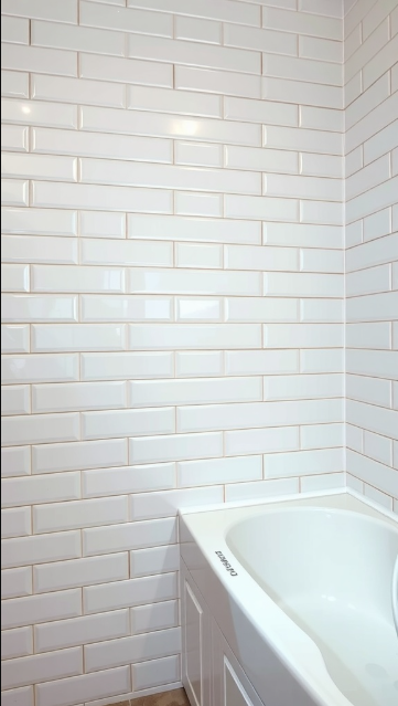 Their simple lines and smooth finish create a classic look that never goes out of style, effortlessly complementing both modern and traditional design aesthetics. In this bathroom, soft lighting accentuates the tiles’ shine, while the clean edges and uniform layout add a subtle touch of sophistication. The white backdrop also allows colorful accents or natural materials to stand out beautifully.
