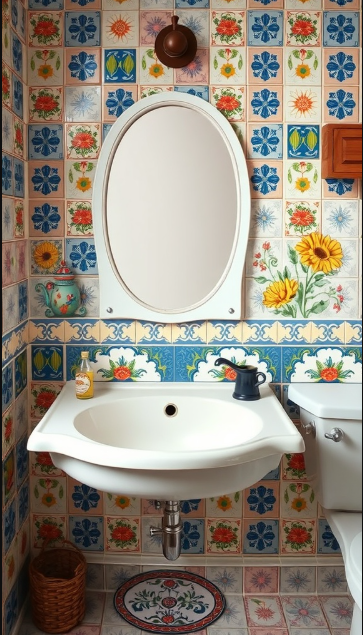 Patterned cement tiles can infuse a bathroom with personality and charm. In the image, vibrant colors and intricate designs transform a simple space into an inviting, lively retreat.
