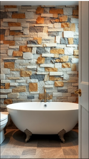 Natural stone accent walls add a touch of rustic charm to any bathroom. Imagine walking into a space where the walls are alive with texture and warm, earthy tones. In the image, the stone wall instantly creates a cozy, inviting atmosphere.