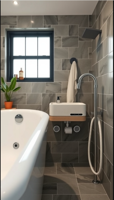 Imagine stepping into a bathroom that combines comfort with cutting-edge convenience. The image highlights a sleek, contemporary design enhanced by Bluetooth-enabled accessories, transforming your daily routine into a more enjoyable experience.