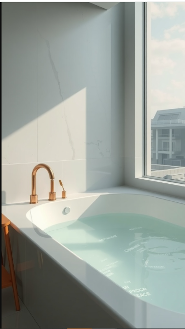 Imagine stepping into a bathroom that offers more than just a quick rinse. With virtual reality bathing experiences, your tub becomes a gateway to relaxation and discovery. In the image, a sleek bathtub sits bathed in natural light, its tranquil water paired with elegant fixtures that set the stage for something extraordinary.