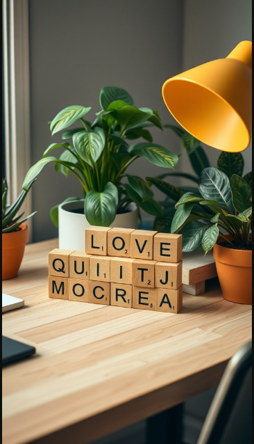 These small reminders encourage focus on what matters most. Words like LOVE or even a rearranged playful twist like COMIC add a cheerful, lighthearted energy that keeps your desk feeling vibrant. Paired with touches of greenery, the scene becomes both inspiring and relaxing.