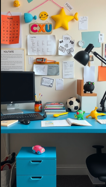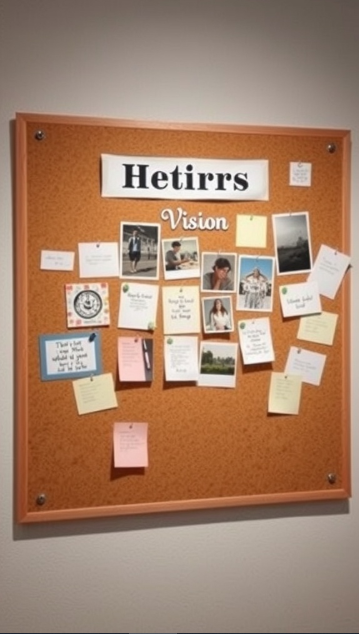 Vision boards are a creative and uplifting way to bring your goals and dreams into focus. In this setup, a corkboard brims with photos, notes, and reminders—each one a snapshot of aspirations and ideas that add a personal touch to the workspace.