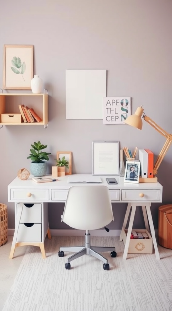 A chic desk lamp stands out as both practical and decorative, casting the right amount of light to boost focus while enhancing the overall aesthetic. A well-lit desk not only supports productivity but also makes the space more enjoyable to spend time in.