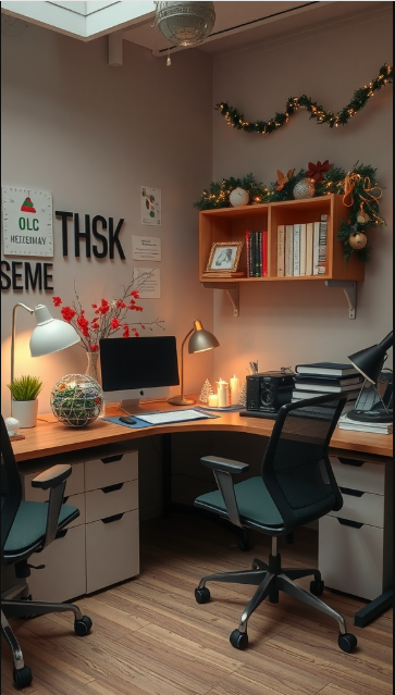 Small details, like ornaments or seasonal plants, keep the space feeling fresh and lively. These simple touches not only brighten your desk but also make it feel more personal, transforming your workspace into an environment you’ll truly enjoy spending time in.