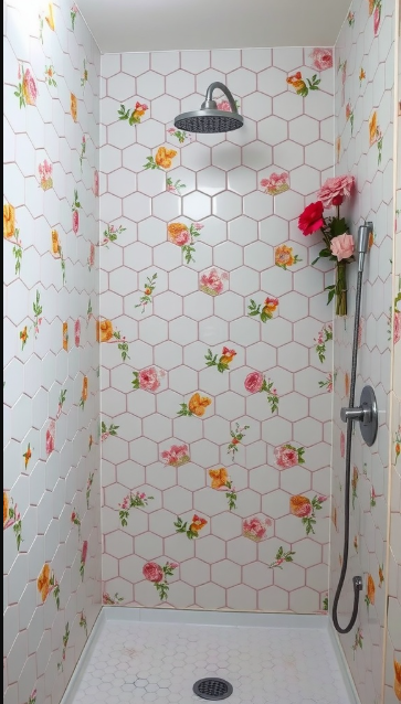 By incorporating floral hexagon tiles, you can create a shower that feels like a quaint countryside escape—an intimate nook that adds comfort and charm to your everyday routine.