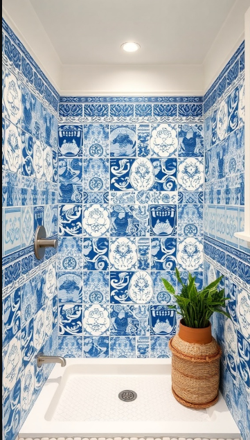 Step into a bathroom styled with blue and white tiles, and you’re instantly transported to a coastal escape. This design highlights a stunning mix of vibrant blue tones and crisp white accents, creating a fresh, uplifting atmosphere. Intricate patterns within the tiles echo classic coastal motifs, with each piece adding its own story and turning the shower into a true focal point.