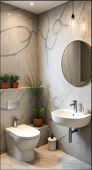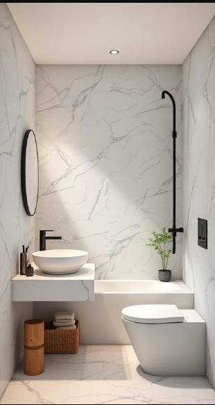 Minimalist Marble Powder Room with Zen Elements