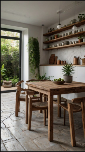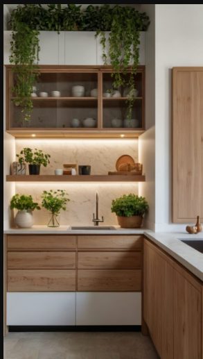 Plants play a vital role in Japandi design, representing growth, life, and harmony with nature. They purify the air and bring a refreshing organic touch to your space. Choose low-maintenance options such as succulents, snake plants, or fiddle leaf figs to naturally elevate your kitchen’s ambiance.