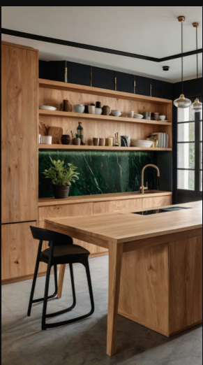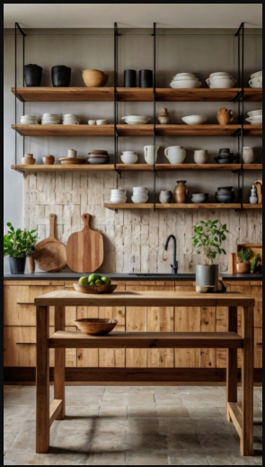 In Japandi kitchens, displays are intentional and minimal, avoiding any sense of clutter. Select a few meaningful items—like antique ceramics or handcrafted utensils—and arrange them thoughtfully to enhance the room’s serene and balanced aesthetic.