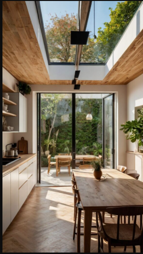 Lighting is essential in shaping the serene atmosphere of a Japandi kitchen. Soft, ambient light from pendant fixtures, floor lamps, or recessed lighting helps create a warm, calming mood. Enhance the natural feel by adding skylights or large windows to let daylight gently fill the space.